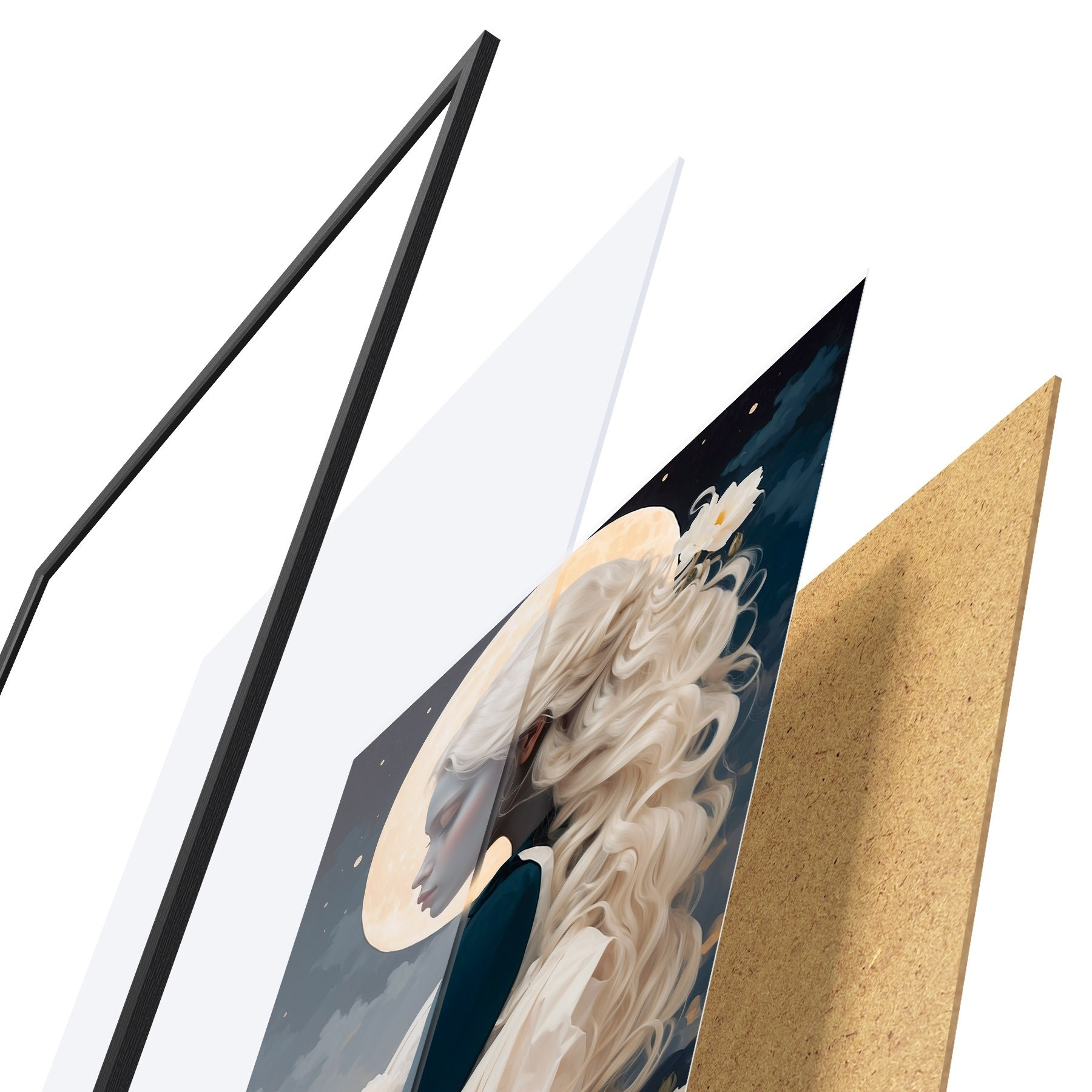 Poster Femeie cu părul alb sub lună f45622