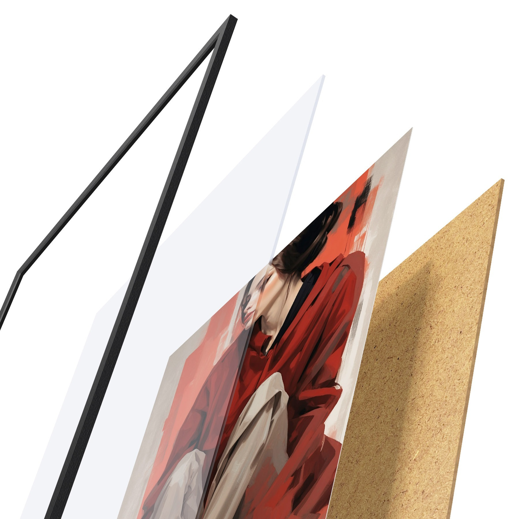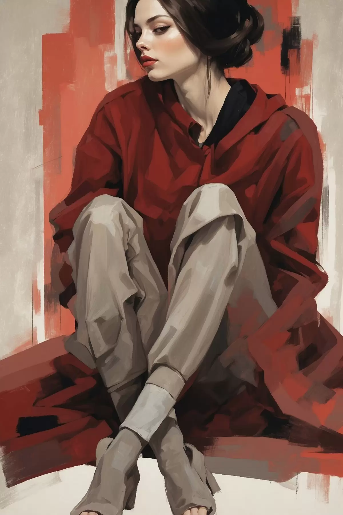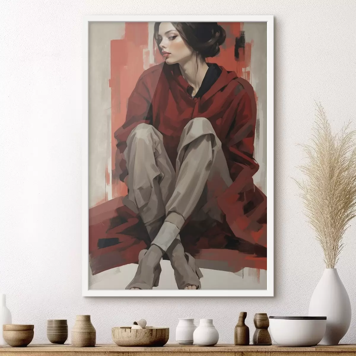 Poster Fată în mantie roșie stând cu picioarele îndoite Nr f45624