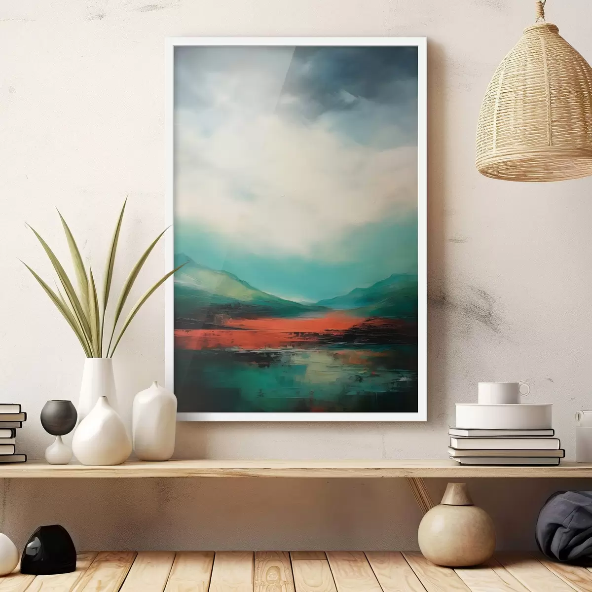 Poster Peisaj luminos cu nori și munți Nr f45626