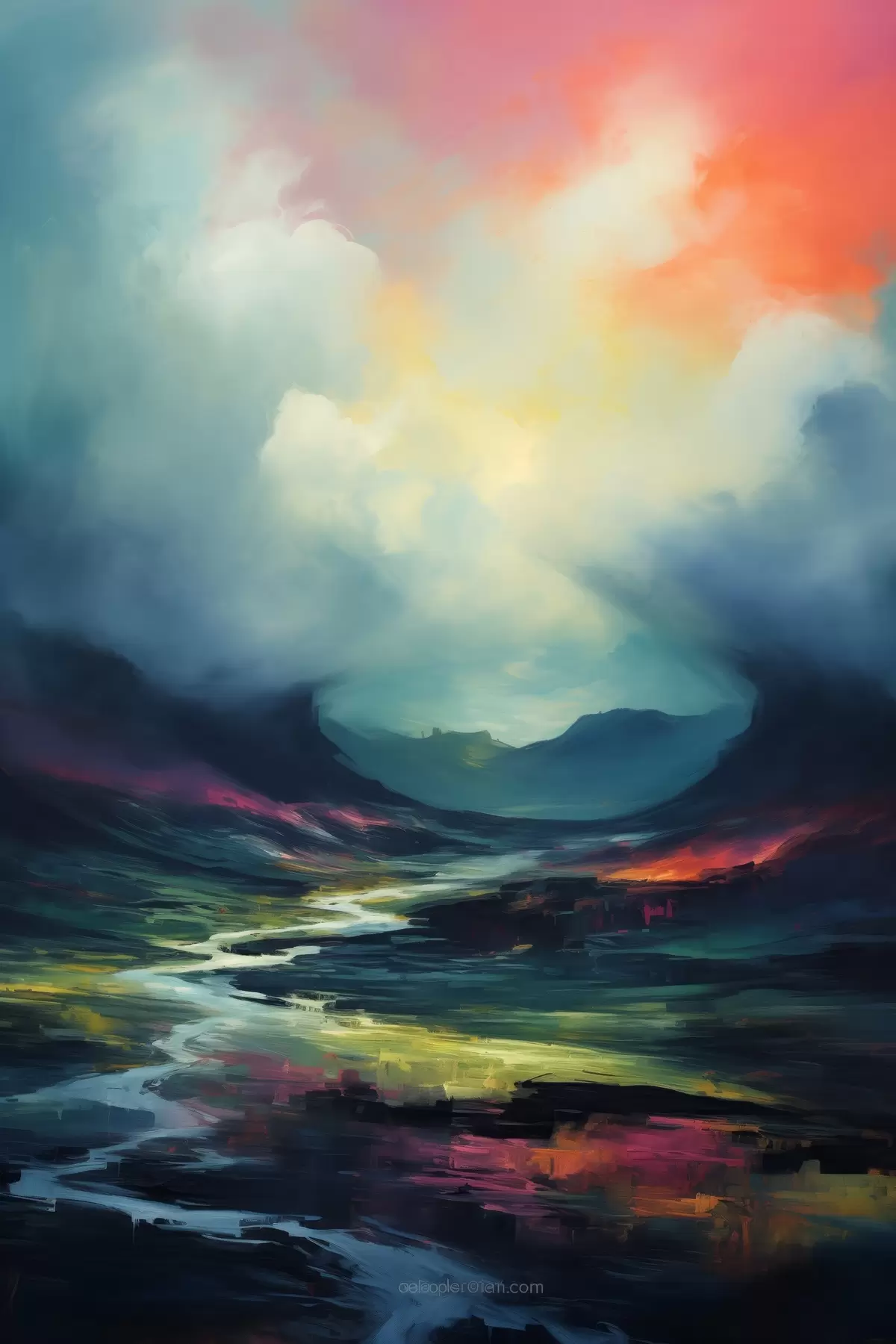 Poster Peisaj abstract cu un râu și munți Nr f45627