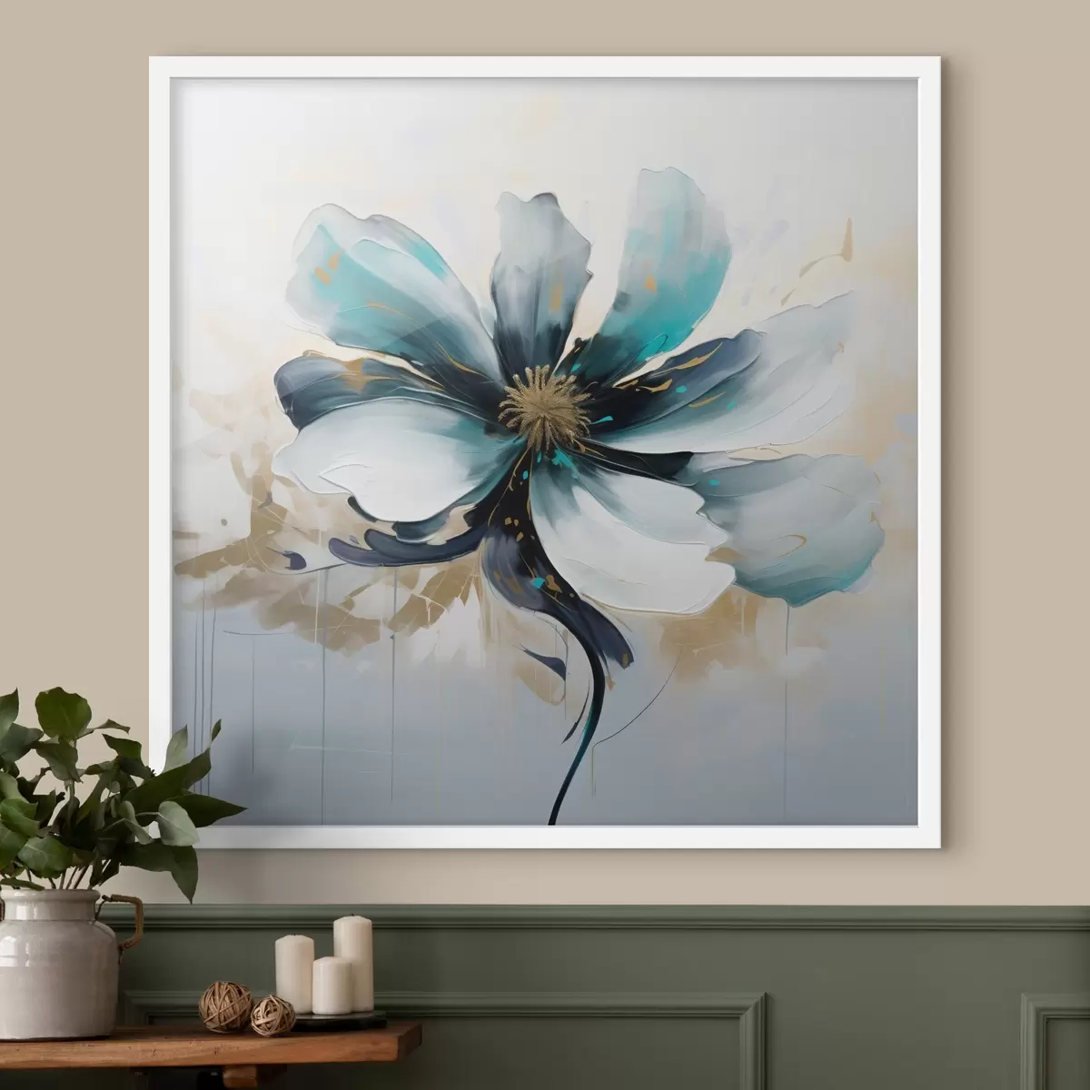 Poster Turcoaz floare în stil pictură în ulei Nr f45641