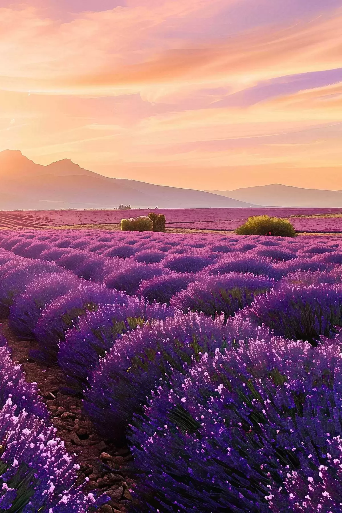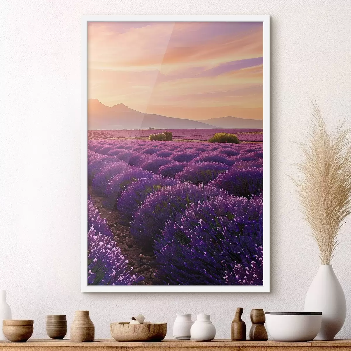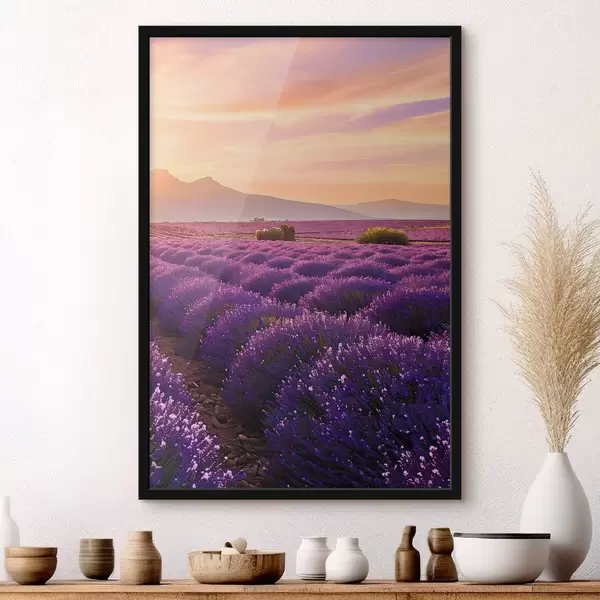 Poster Lavandă pe fundalul unui apus de soare în munți Nr f45664