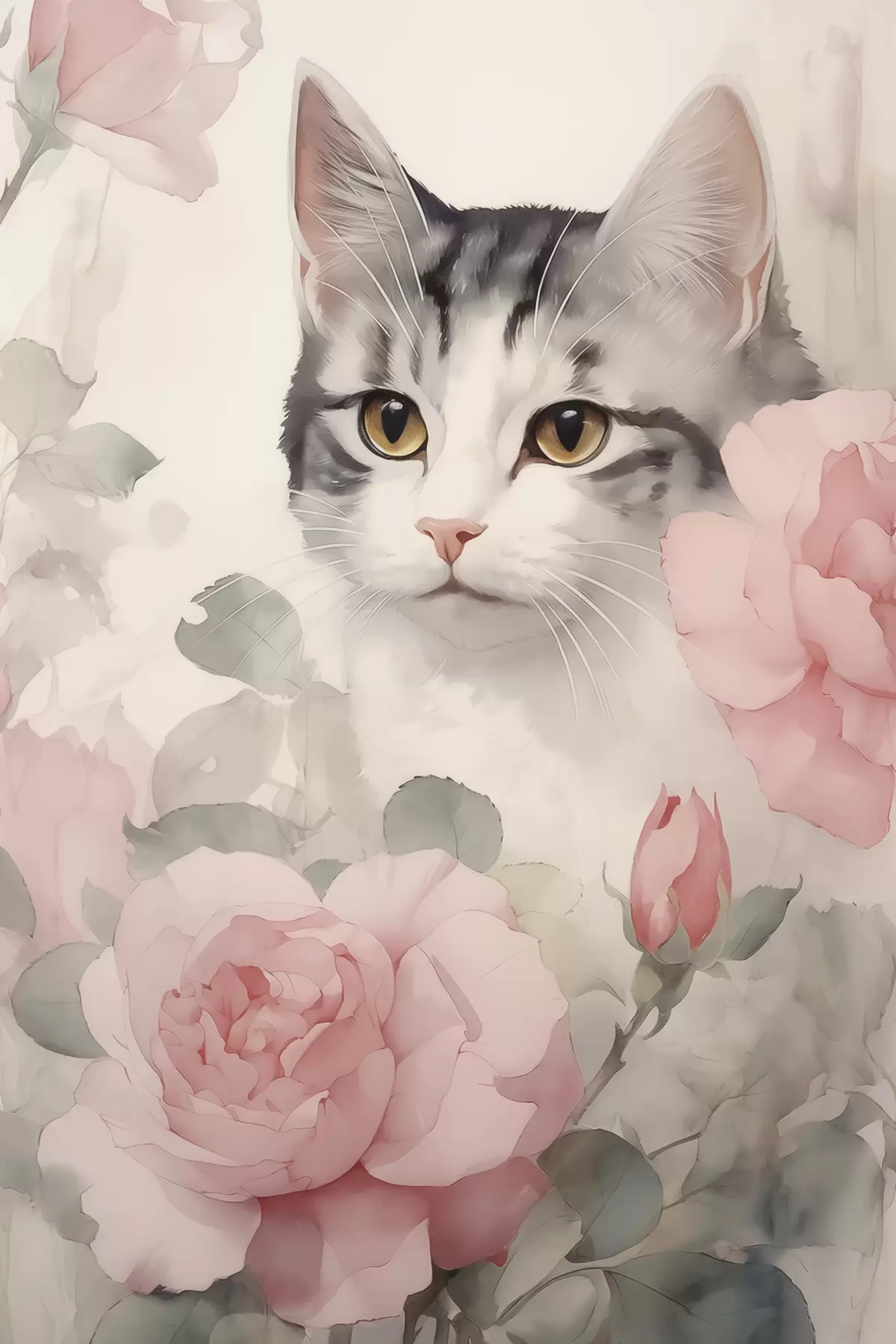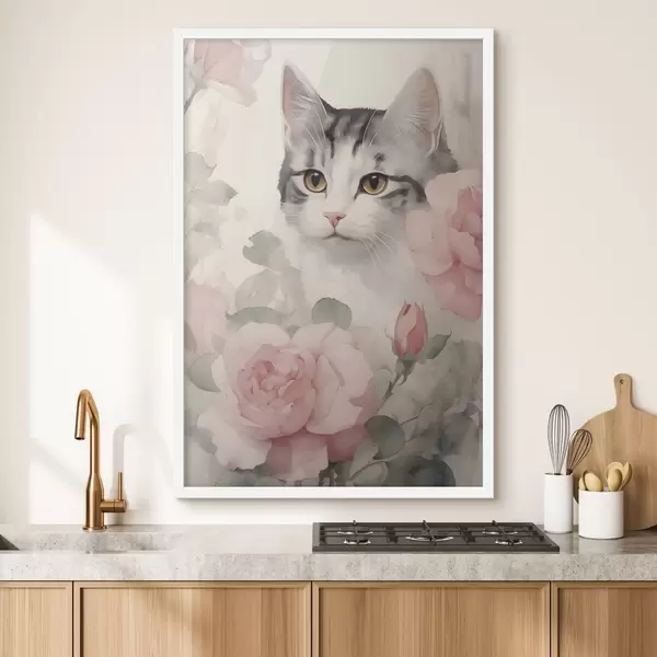 Poster Pisică printre trandafiri Nr f45673