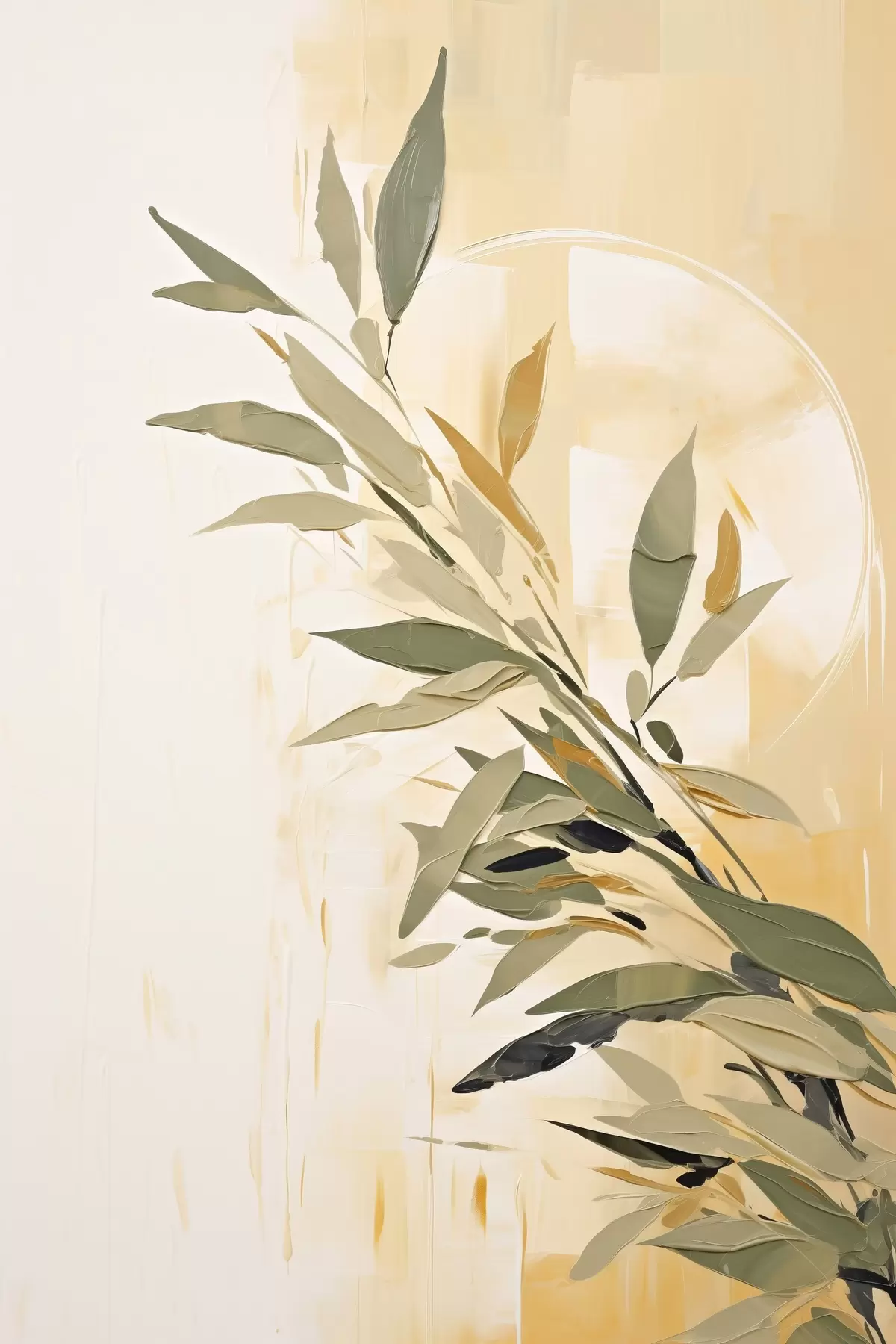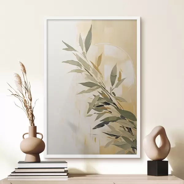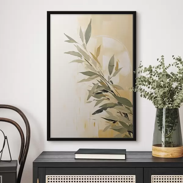 Poster Ramură botanică cu frunze verzi pe un fundal cald Nr f45690