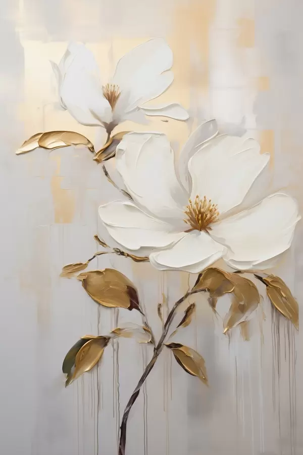 Poster Două flori albe cu frunze galben-portocalii pe un fundal deschis Nr f45691