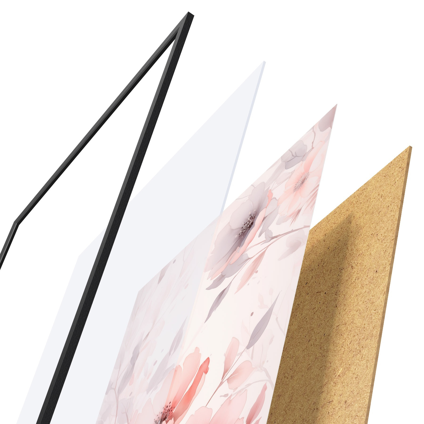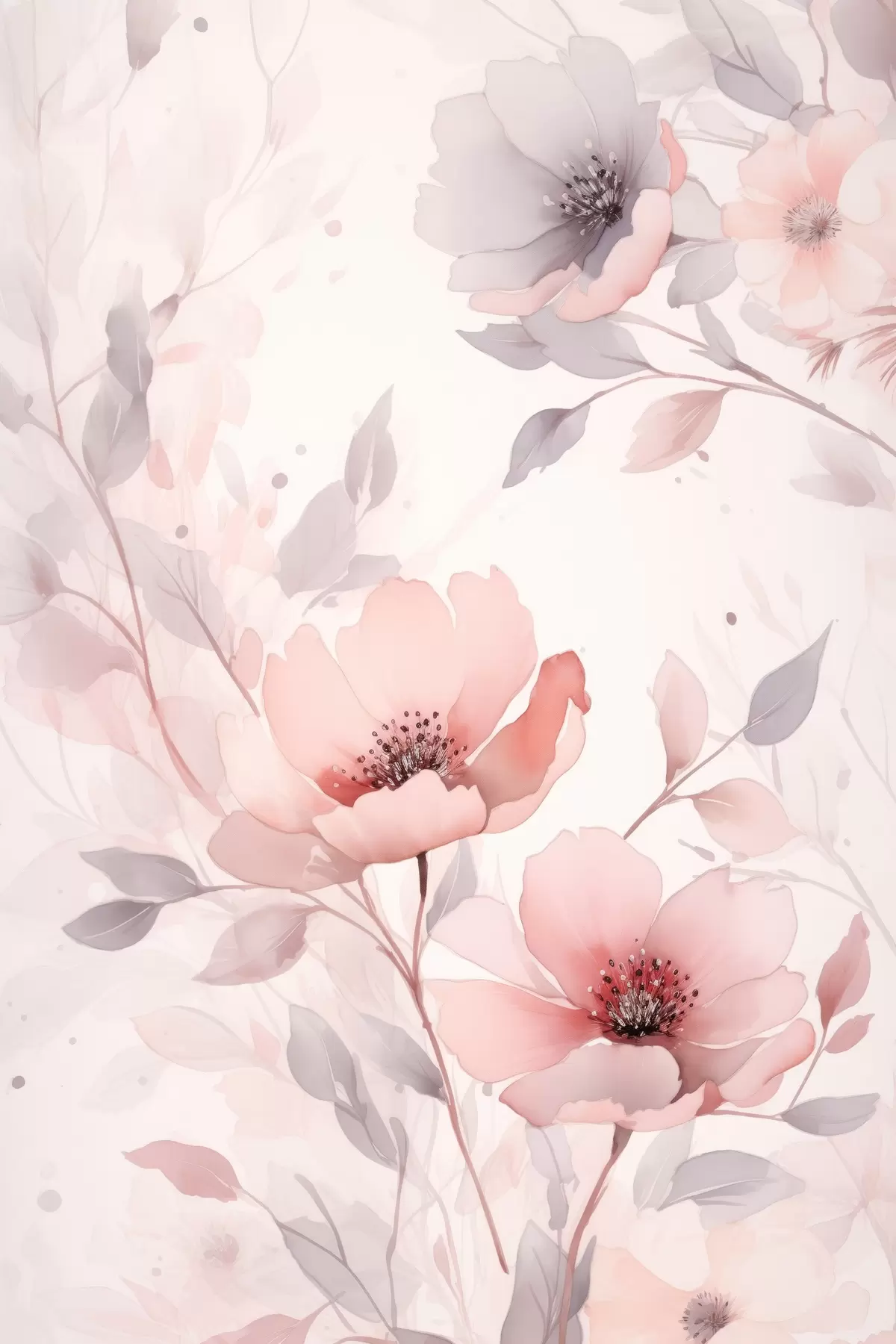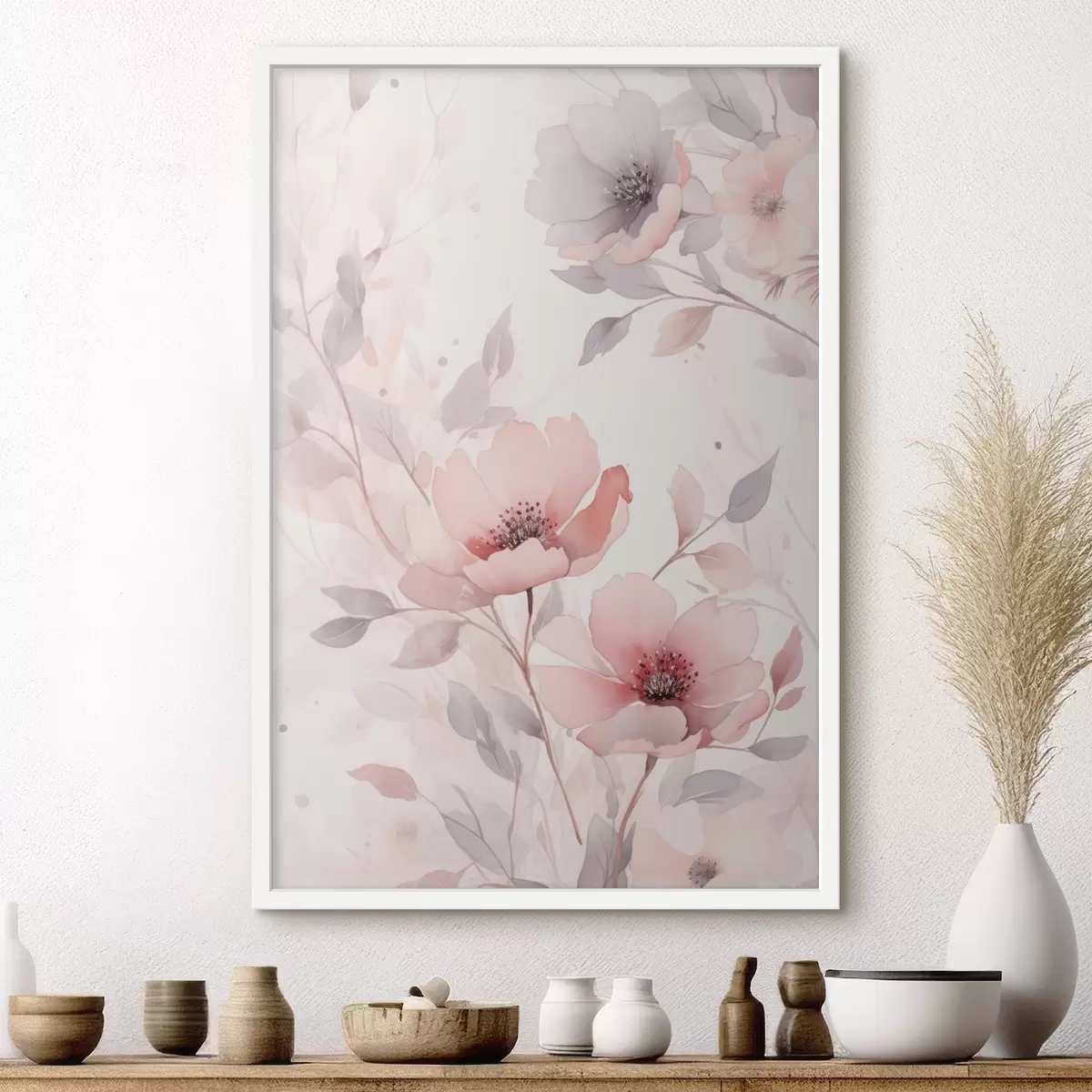 Poster Flori delicate roz-cenușiu cu efect de acuarelă Nr f45702