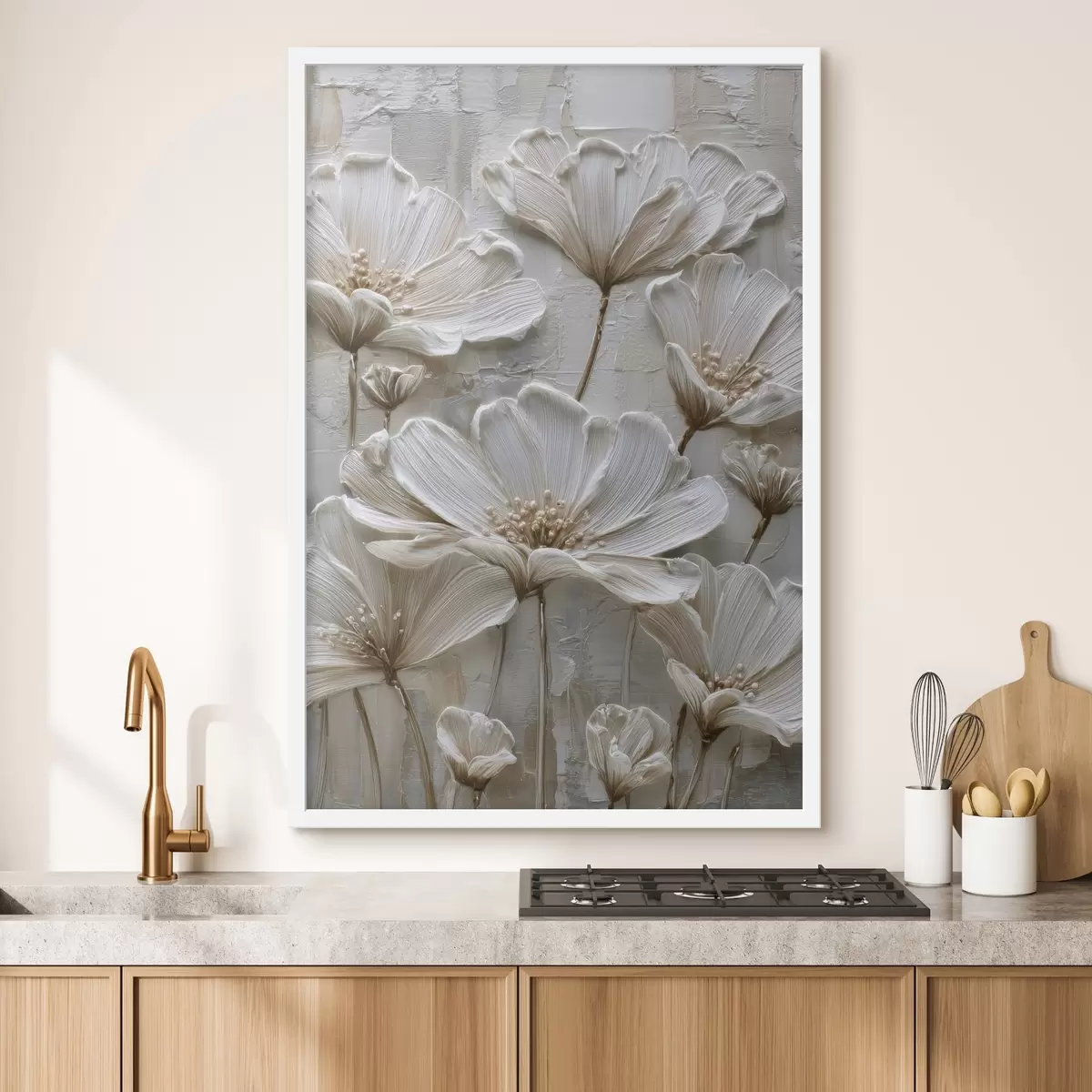 Poster flori crem cu stil impasto imitație f45713