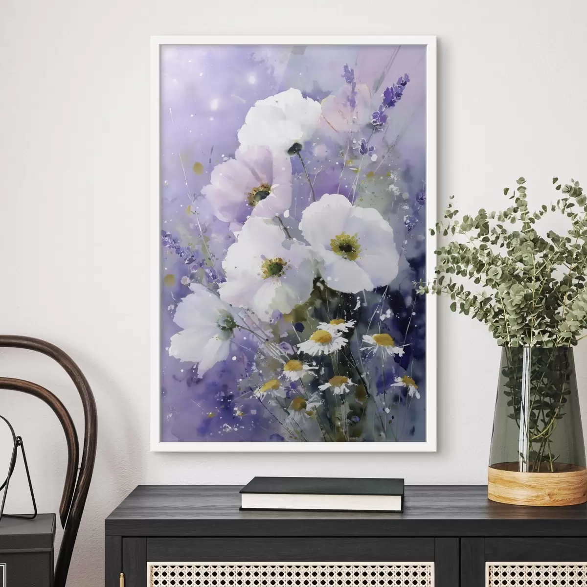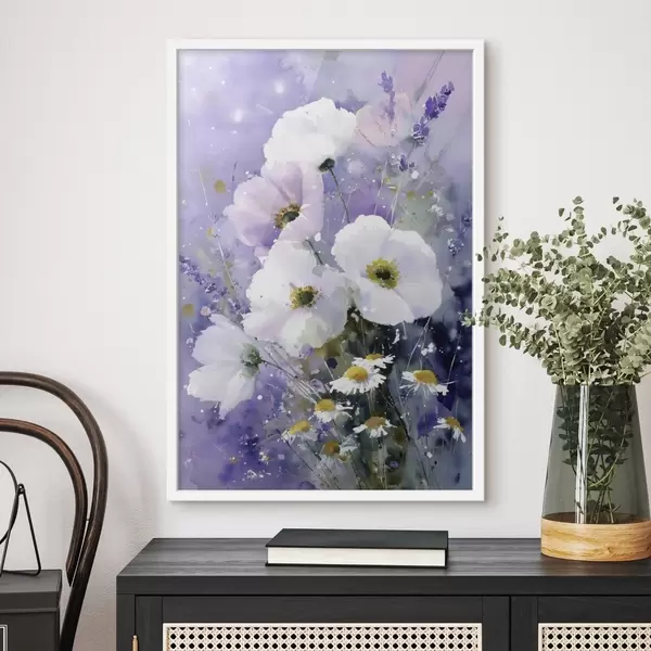 Poster buchet în acuarelă în tonuri de liliac și alb f45719