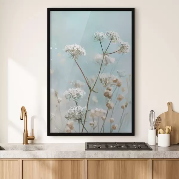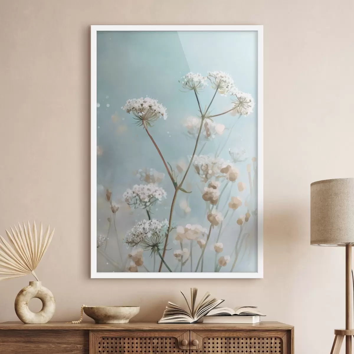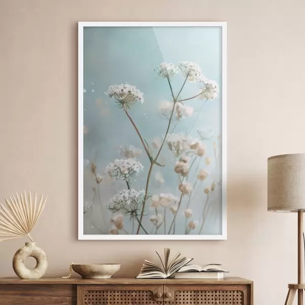 Poster Flori Queen Anne's Lace în stil acuarelă pe fundal albastru Nr f45722