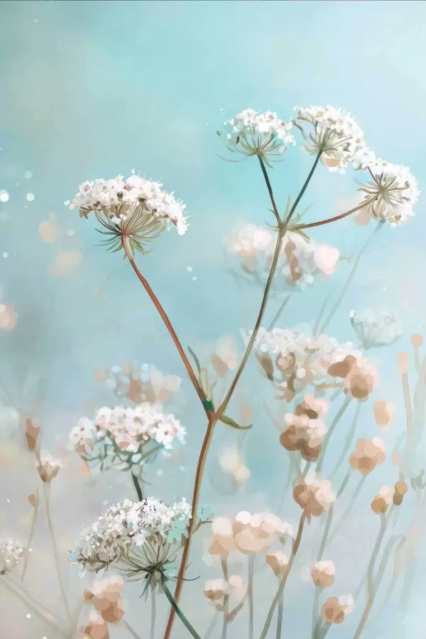 Poster Flori Queen Anne's Lace în stil acuarelă pe fundal albastru Nr f45722