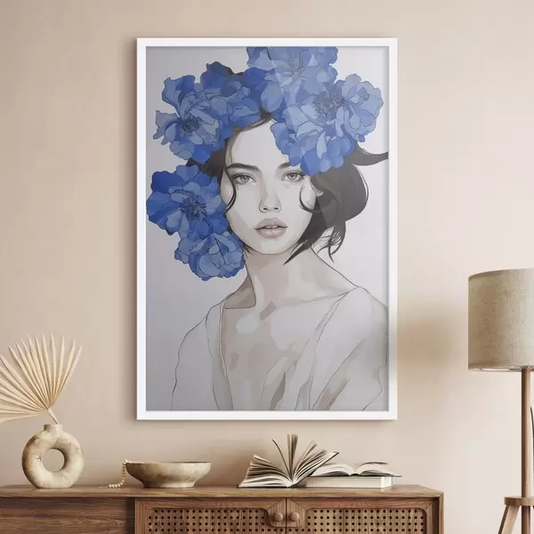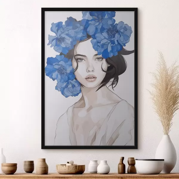 Poster Portretul unei fete cu flori albastre f45756