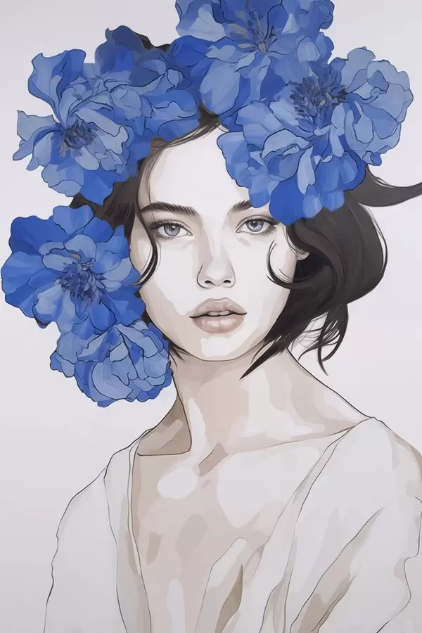 Poster Portretul unei fete cu flori albastre Nr f45756