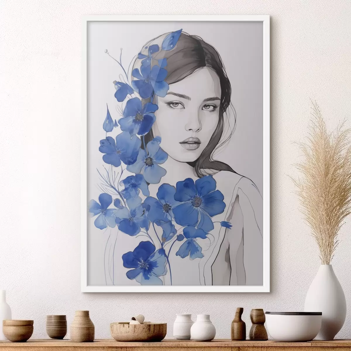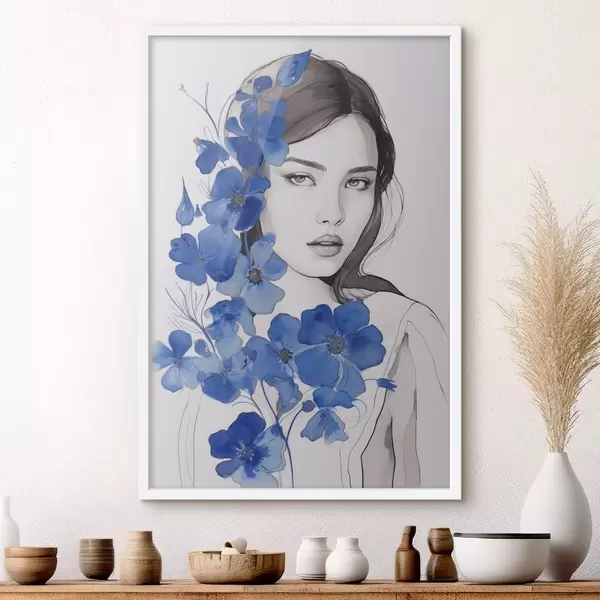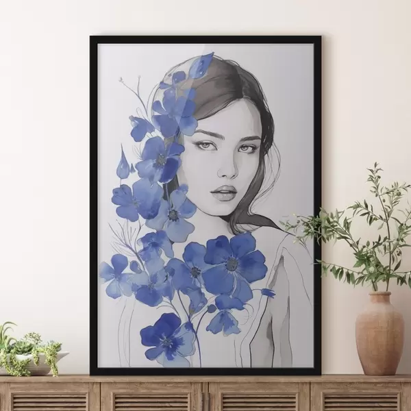 Poster Fată și flori albastre Nr f45757