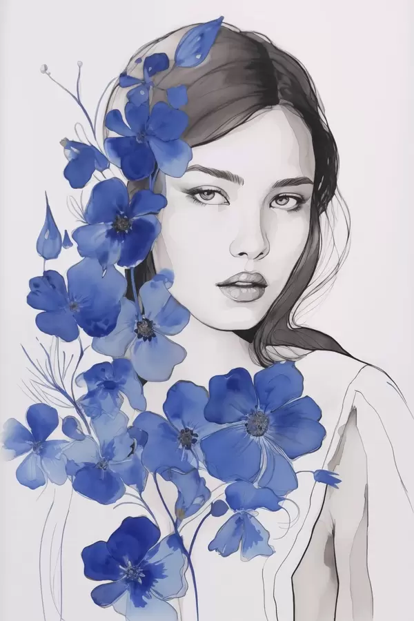 Poster Fată și flori albastre Nr f45757