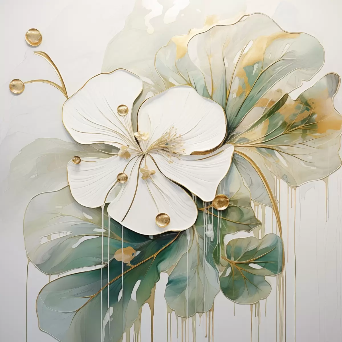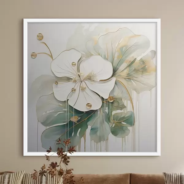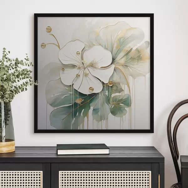 Poster O floare albă cu detalii galben-portocalii și frunze verzi Nr f45815