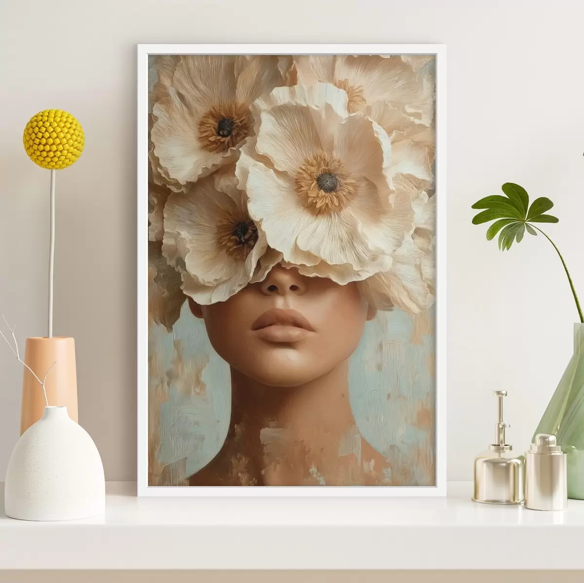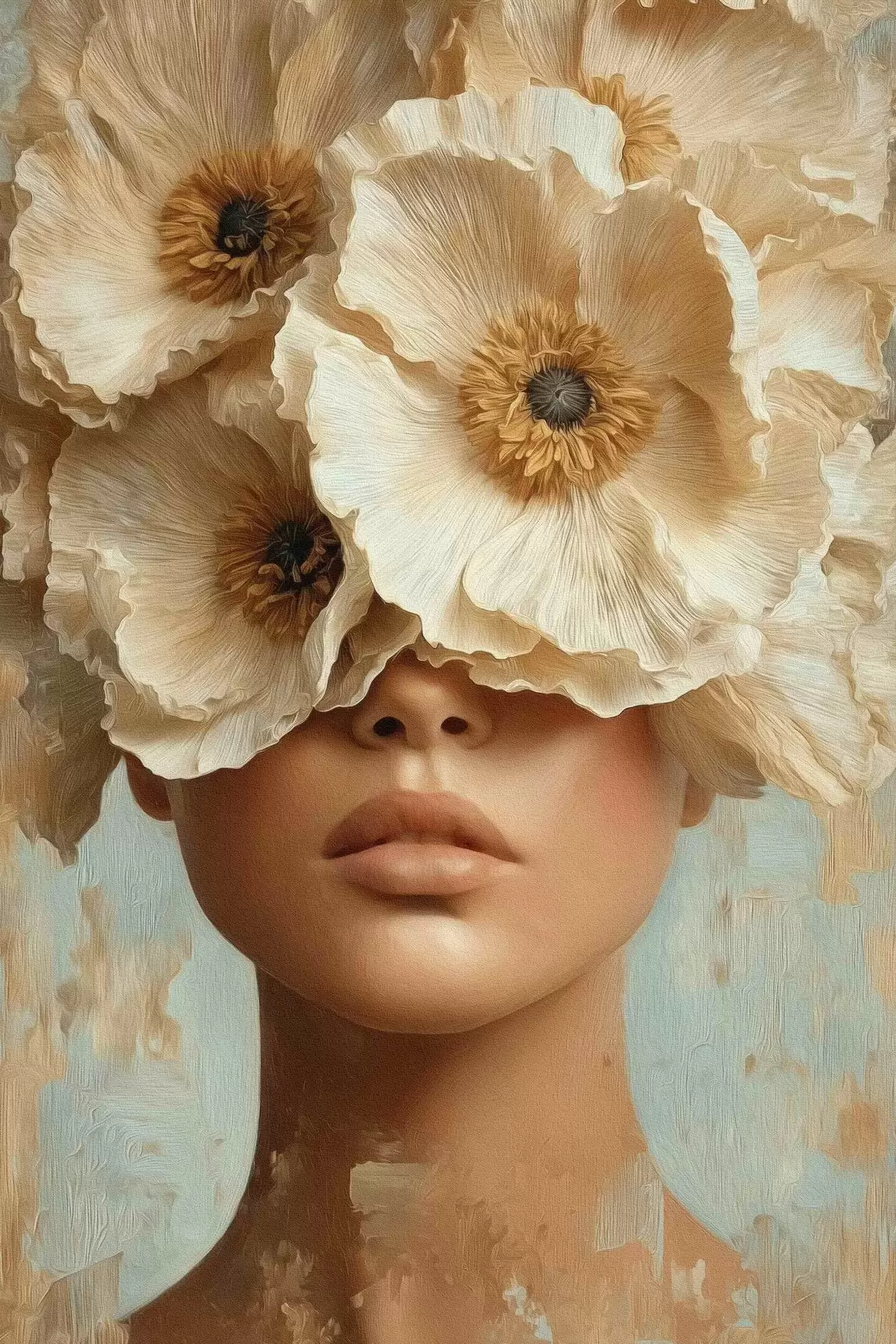 Poster Portret cu flori bej acoperind ochii Nr f45870