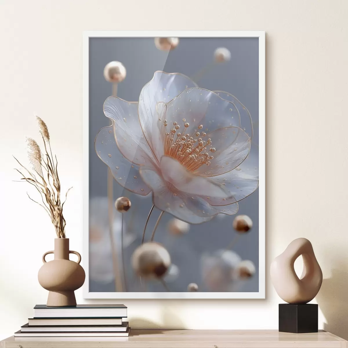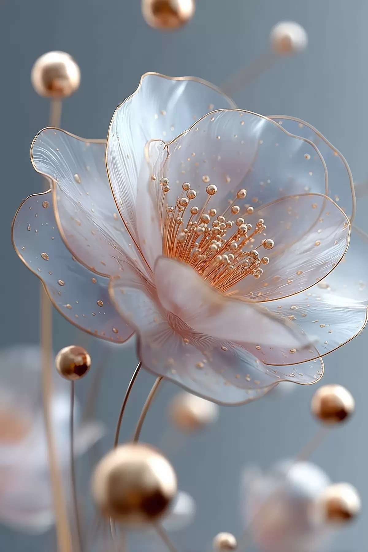 Poster Floare translucidă cu stamine de cupru pe fond albastru f45880