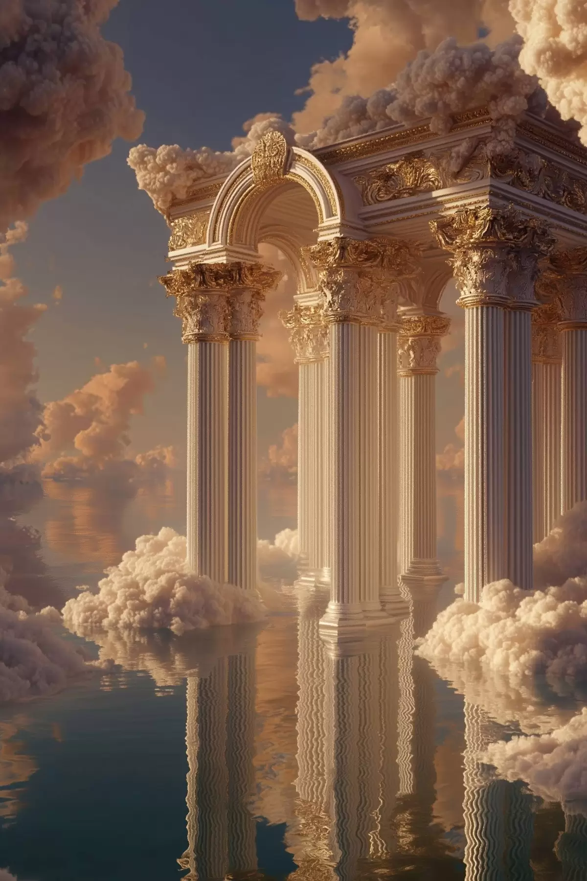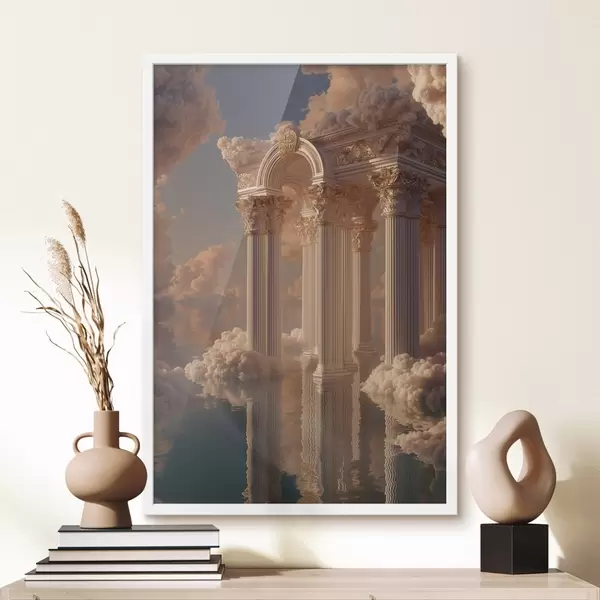 Poster Coloane în nori, reflexii pe apă Nr f45881
