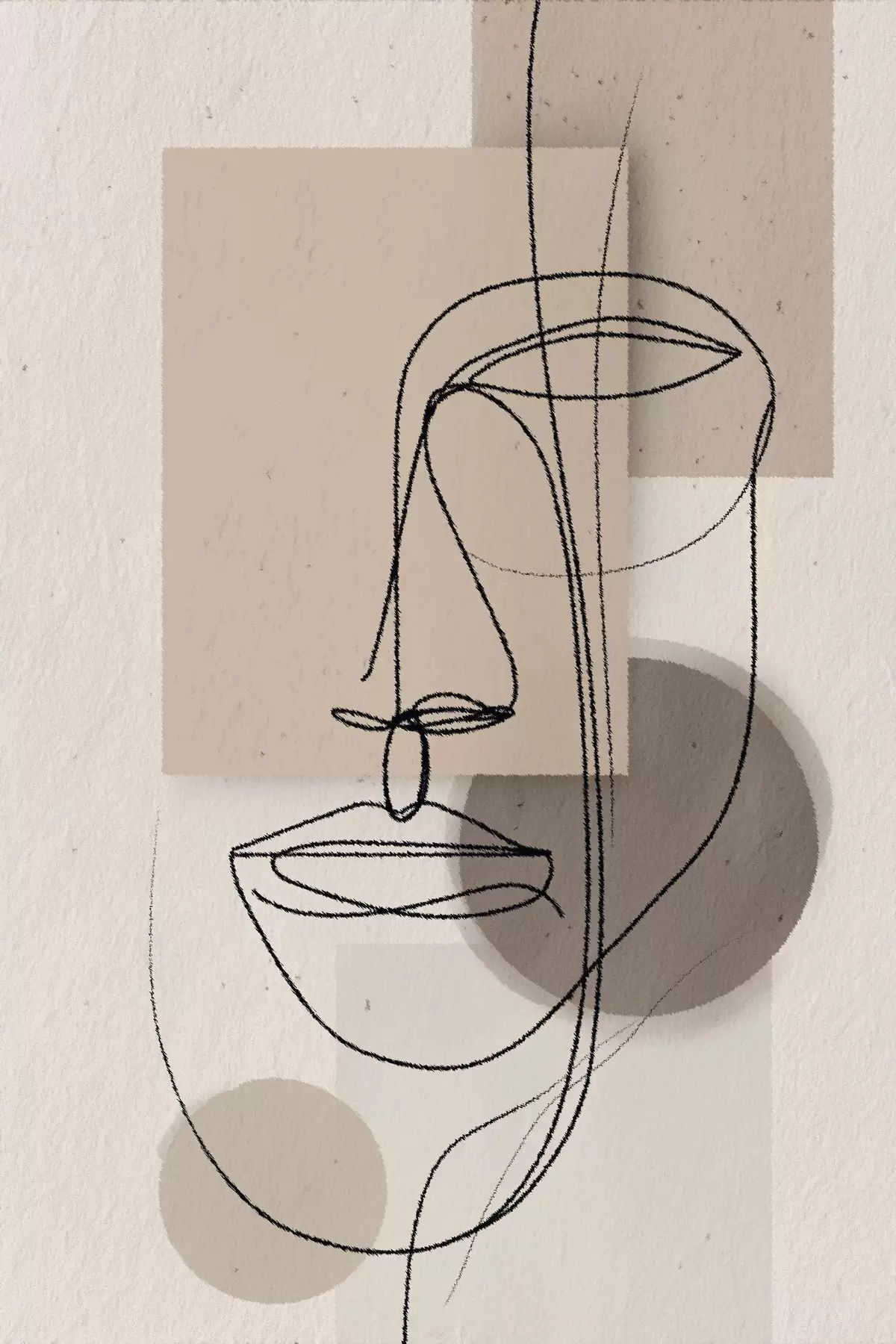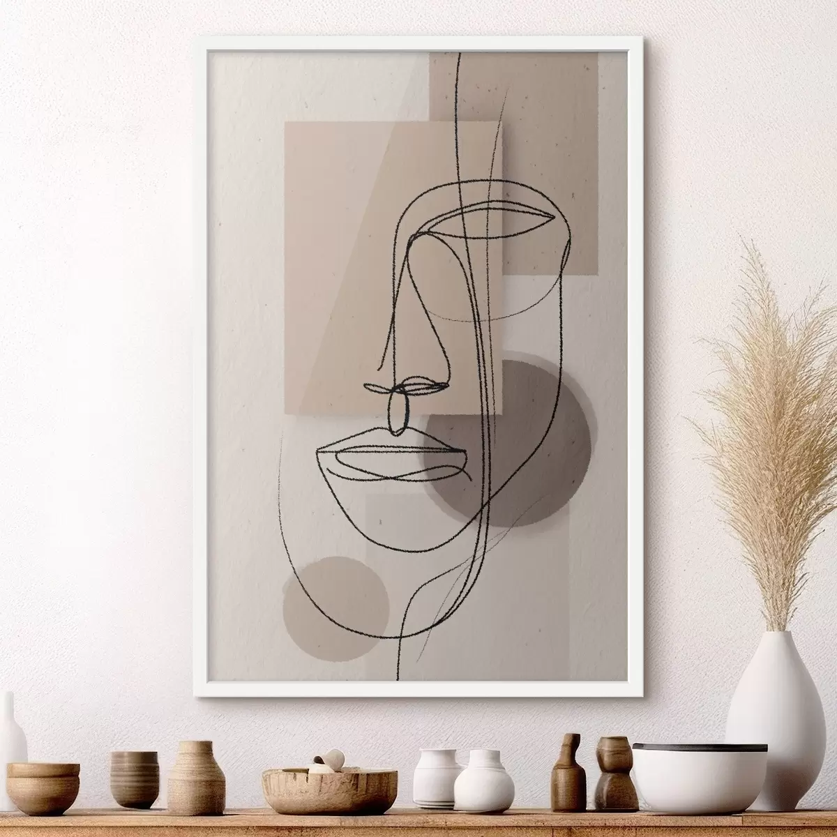 Poster Portret în linie peste forme geometrice bej Nr f45886