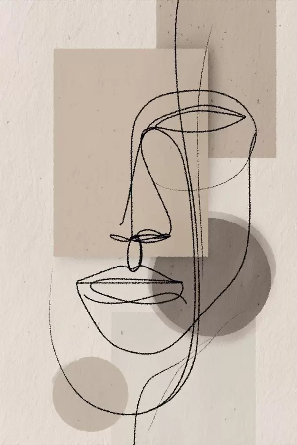 Poster Portret în linie peste forme geometrice bej Nr f45886