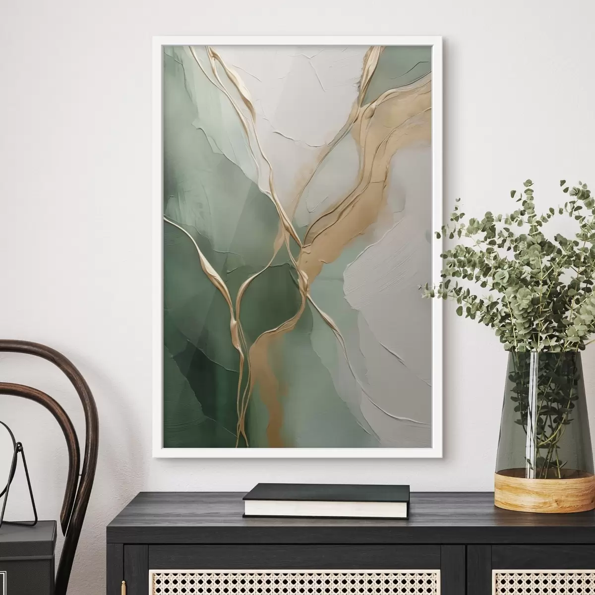 Poster Abstracție smarald-crem cu șiroaie galbene Nr f45887
