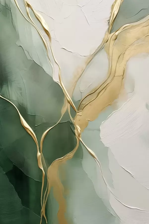 Poster Abstracție smarald-crem cu șiroaie galbene Nr f45887