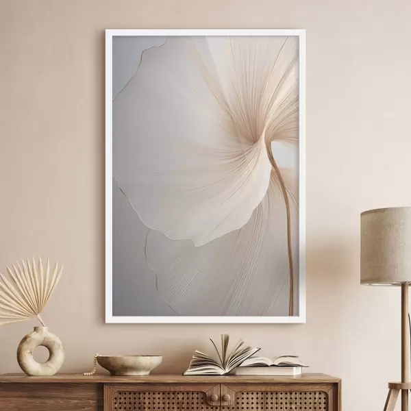Poster Flori abstracte cu petale subțiri și delicate, în nuanțe de alb și bej f45922
