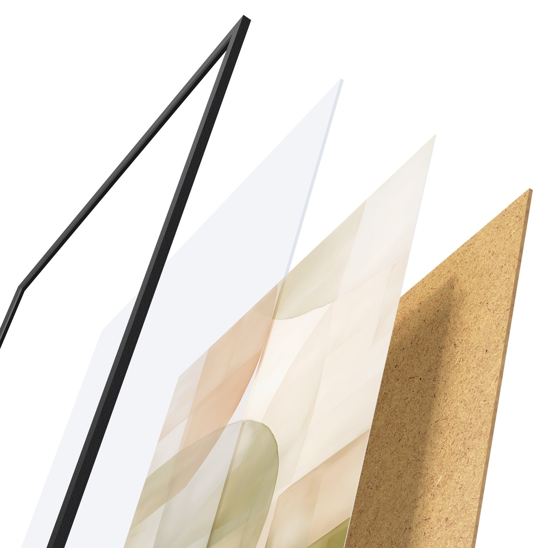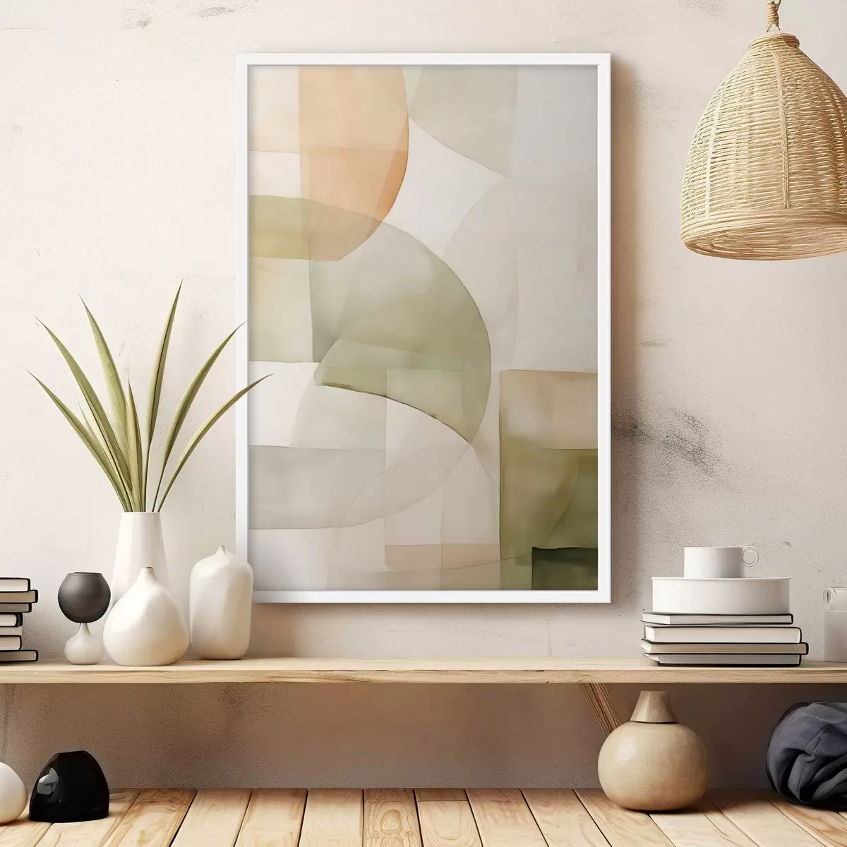 Poster Forme geometrice abstracte texturate în acuarelă, în nuanțe de verde, maro și bej Nr f45929