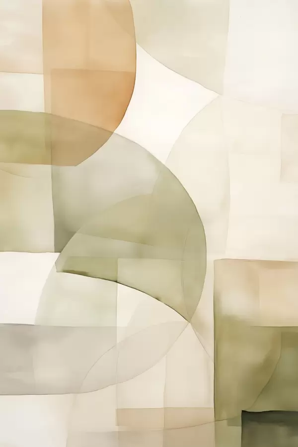 Poster Forme geometrice abstracte texturate în acuarelă, în nuanțe de verde, maro și bej Nr f45929