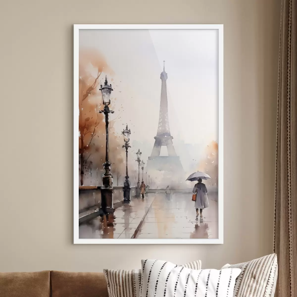 Poster O zi ploioasă în Paris, cu Turnul Eiffel în fundal și felinare vintage Nr f45930