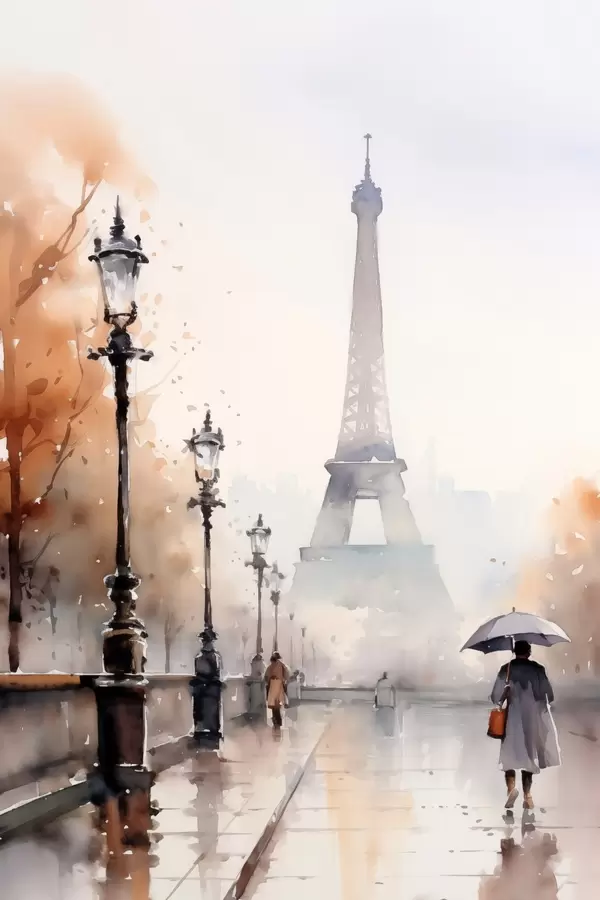 Poster O zi ploioasă în Paris, cu Turnul Eiffel în fundal și felinare vintage Nr f45930