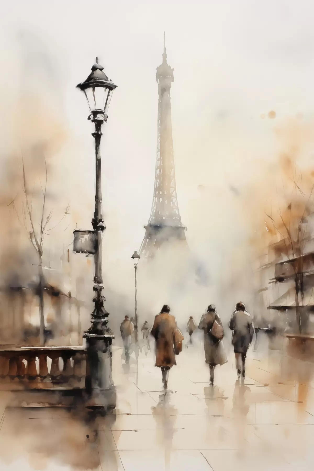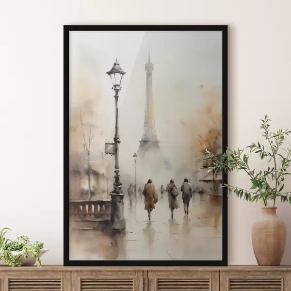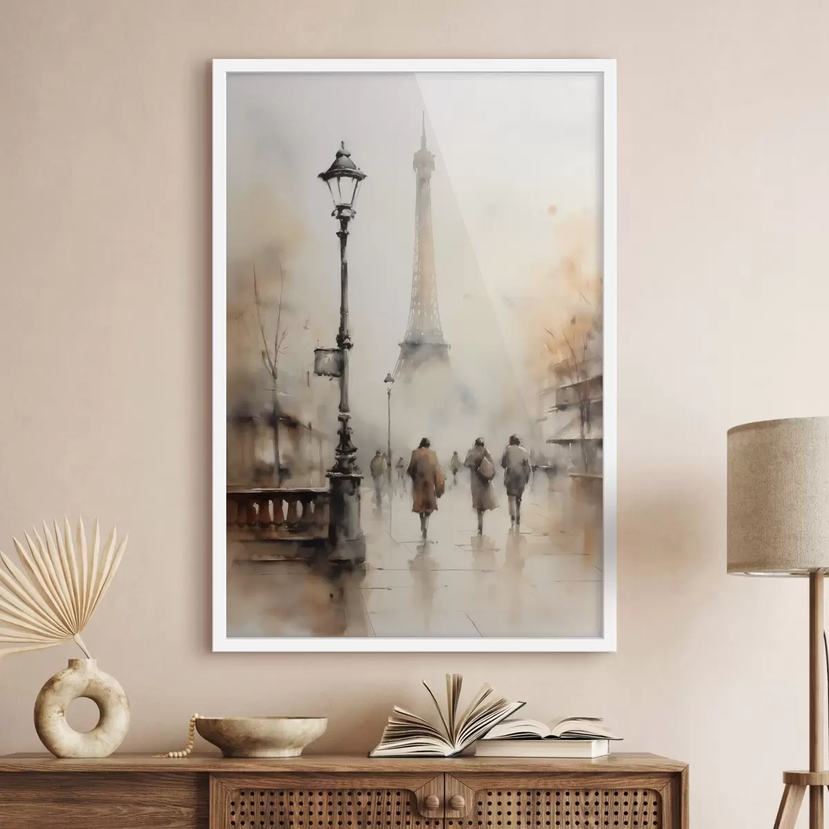 Poster O zi ploioasă de toamnă în Paris, cu Turnul Eiffel în fundal și felinare vintage f45931