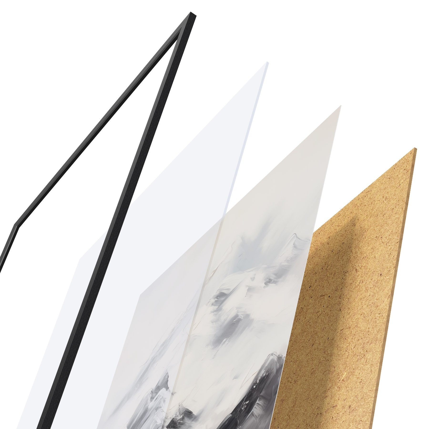 Poster Vârfuri de munte înzăpezite cu umbre cenușii, cer cenușiu, pensule, texturat, minimalist f45933