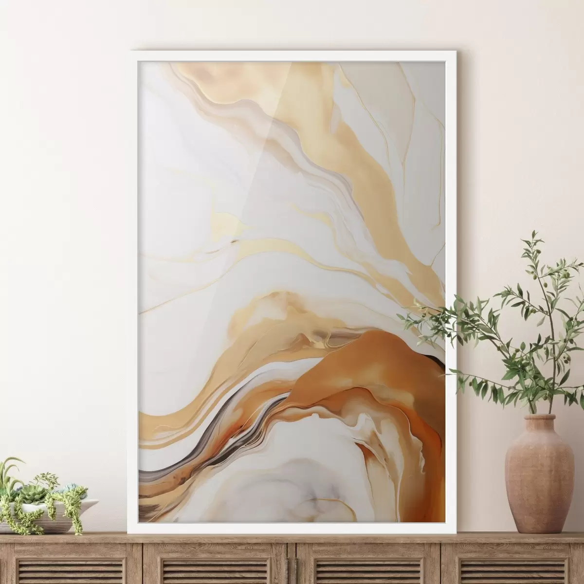 Poster Imitare de pictură abstractă cu forme fluide în nuanțe de alb, portocaliu și maro, minimalistă Nr f45938