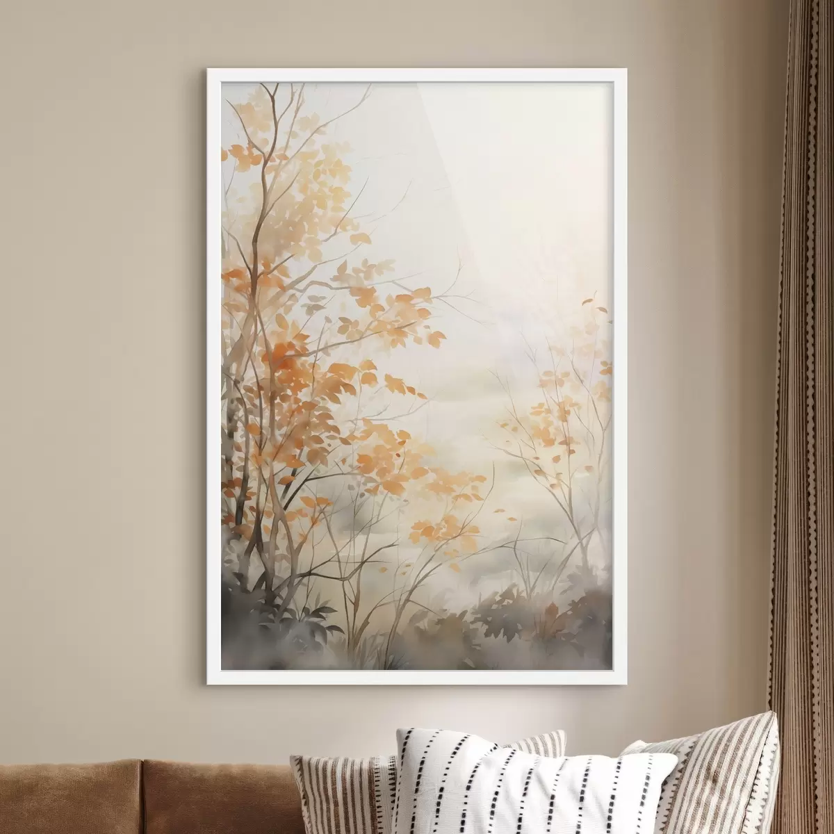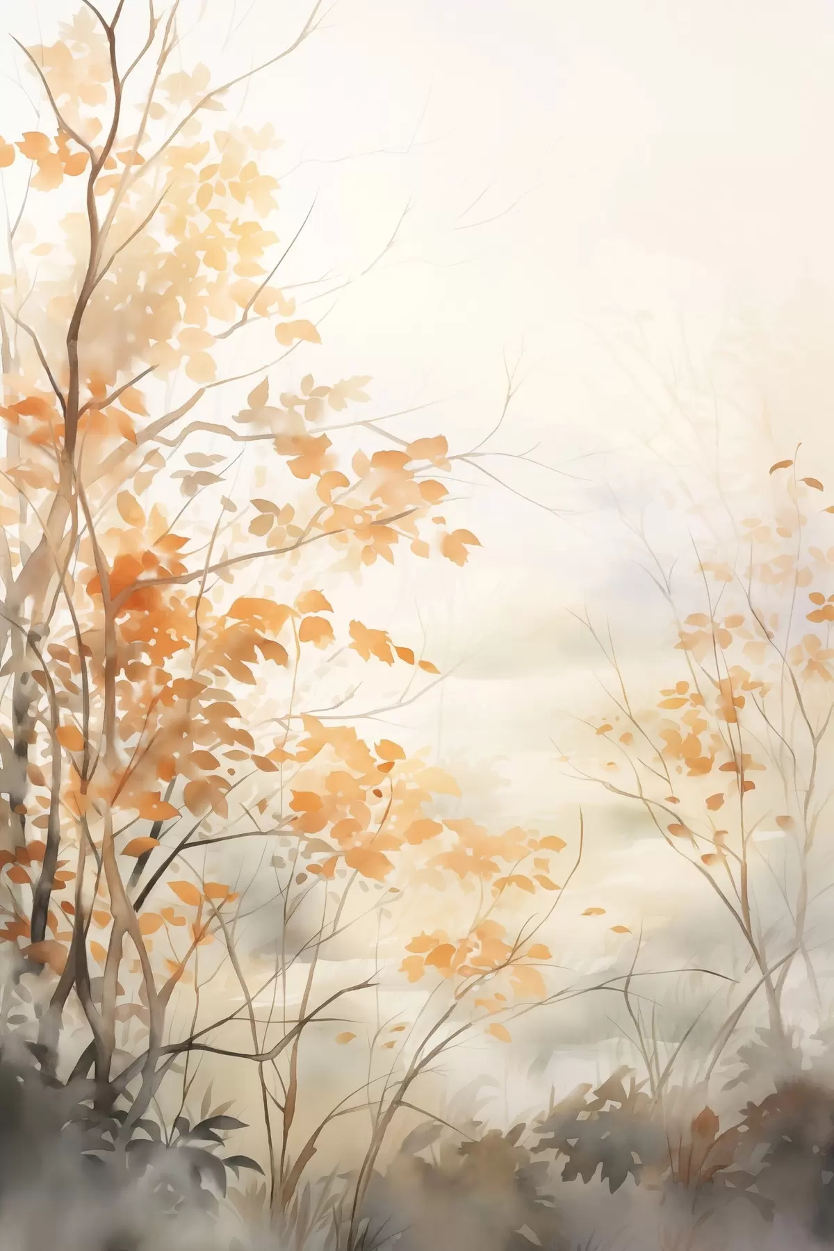 Poster Copaci de toamnă cu frunze și ramuri portocalii, stil acuarelă delicată, tușe delicate Nr f45941