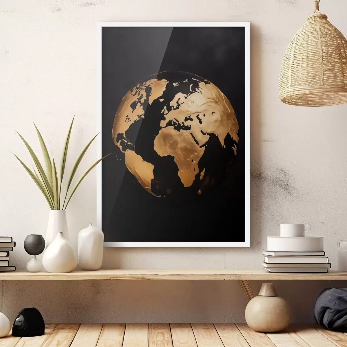 Poster Glob pământesc abstract texturat galben, planetă pe fundal negru, artă minimalistă modernă Nr f45942
