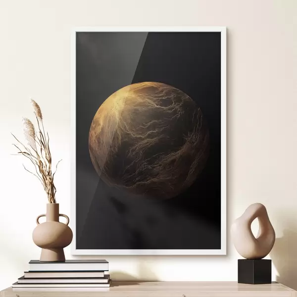 Poster Planetă abstractă cu vene portocalii pe un fundal negru, artă modernă minimalistă Nr f45943
