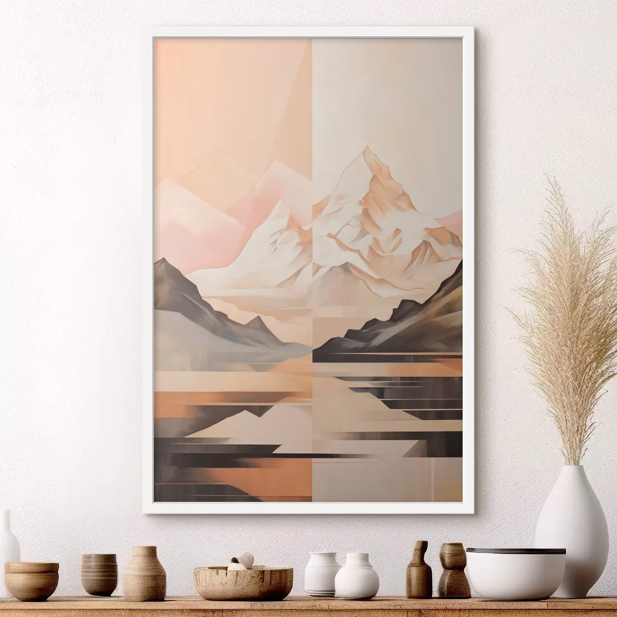 Poster Peisaj abstract cu munți și un lac, culori pastelate, stil minimalist Nr f45948