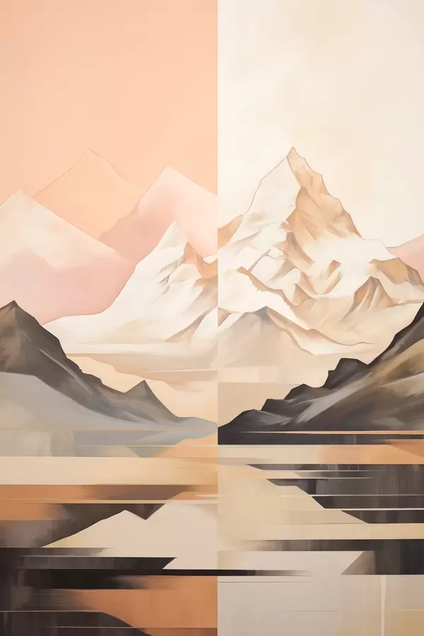 Poster Peisaj abstract cu munți și un lac, culori pastelate, stil minimalist Nr f45948
