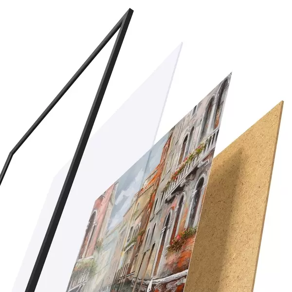 Afișul constă dintr-o ramă, plexiglas, imagine imprimată și suport din PAL. Posterul poate fi agățat imediat pe perete datorită suporturilor de pe spate.