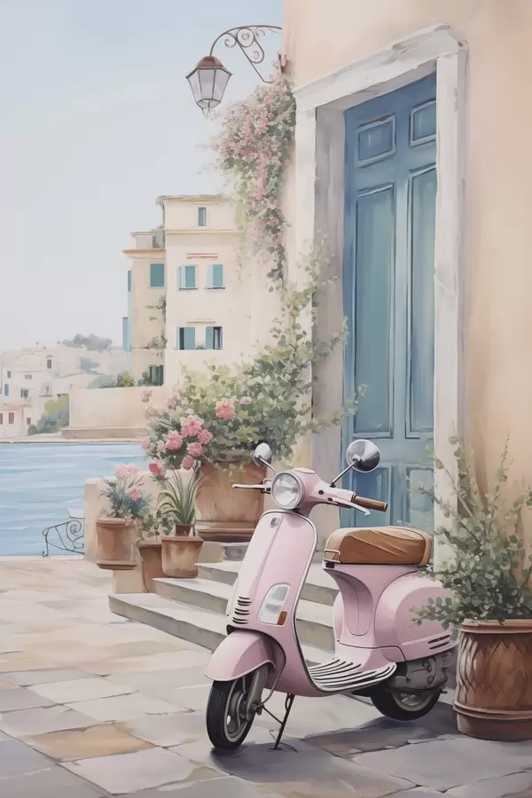 Poster Un scuter pe fundalul unei case Nr f46065