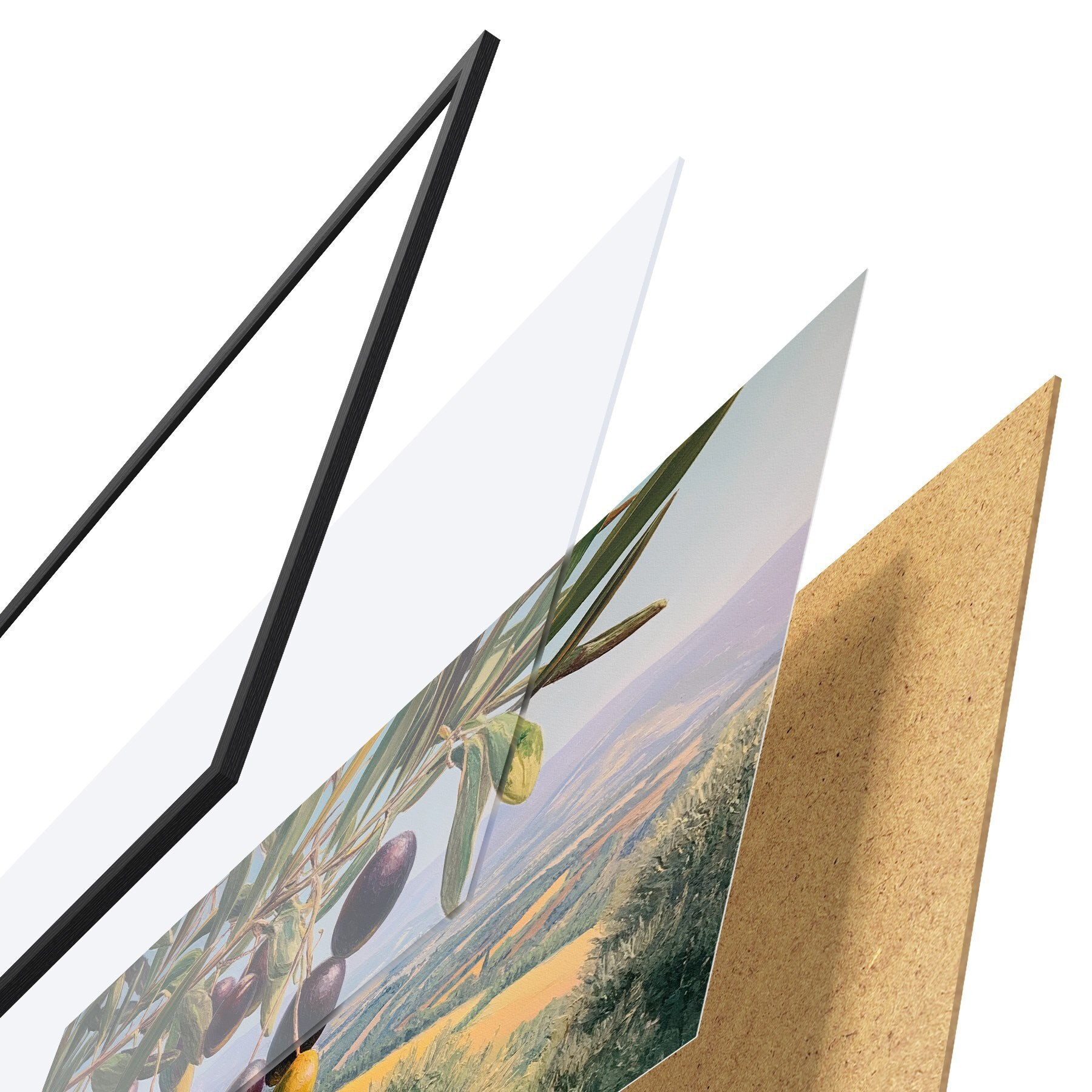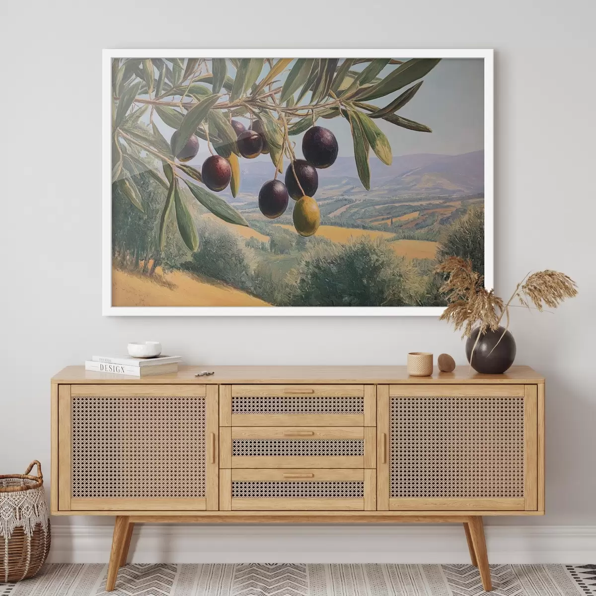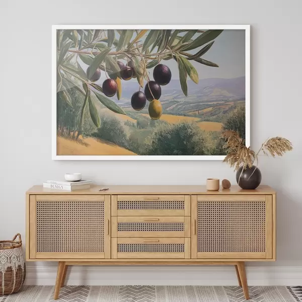 Poster Ramură de măslin cu fructe negre pe fundalul unui peisaj de vară f46150