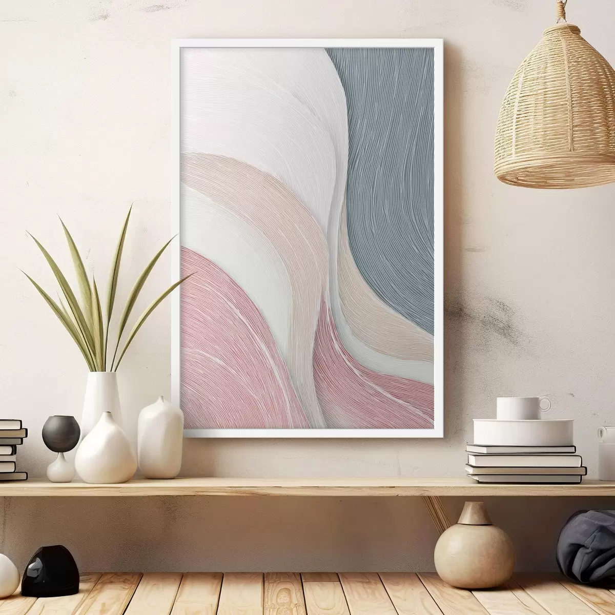 Poster Valuri abstracte ușoare în nuanțe de roz pal și gri-alb Nr f46153
