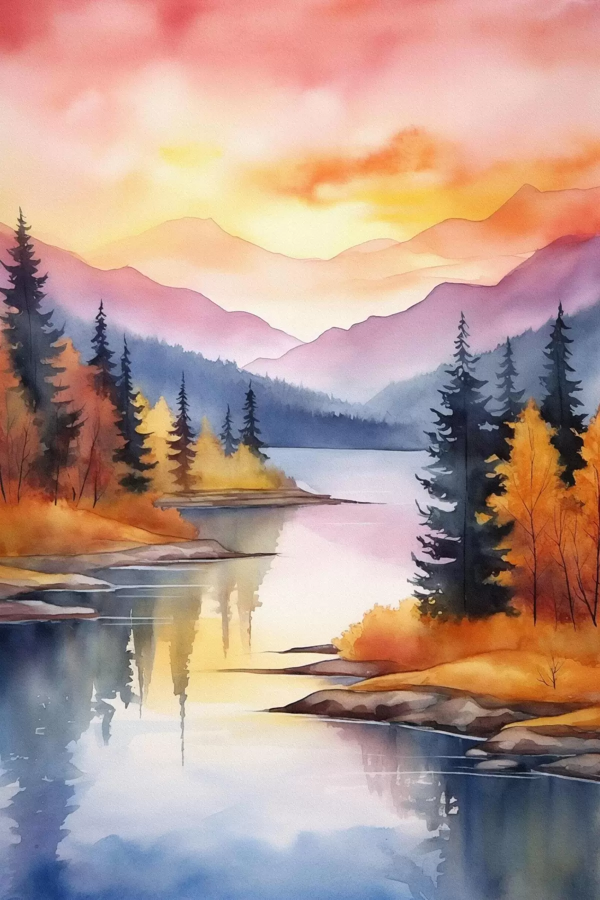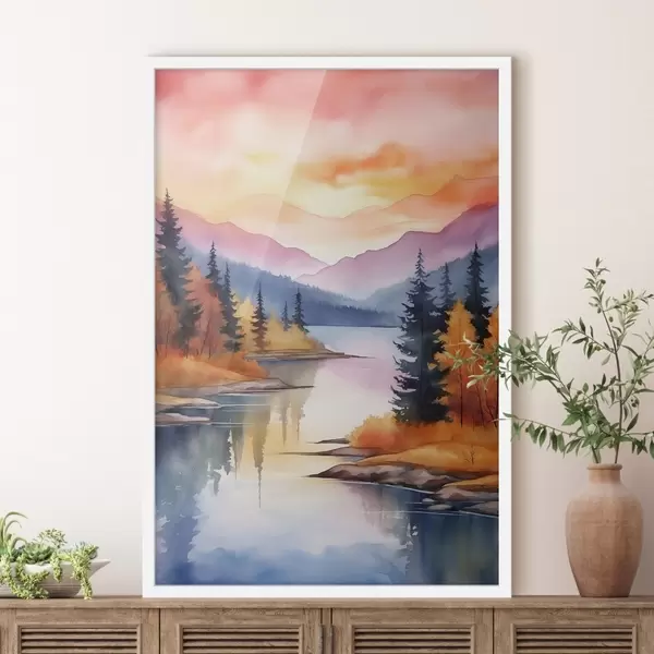 Poster Peisaj de toamnă lângă lac, cu cer senin Nr f46155