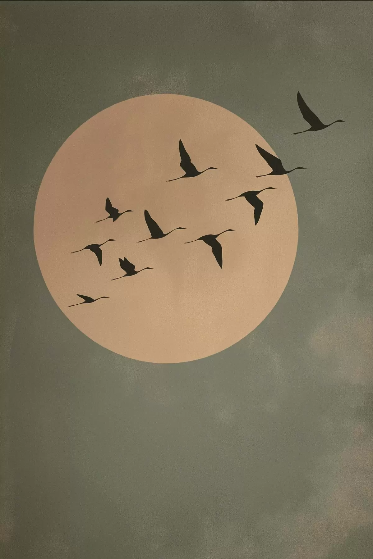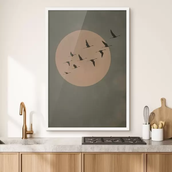 Poster Un stol de păsări zburând pe fundalul unei luni mari și calde Nr f46162