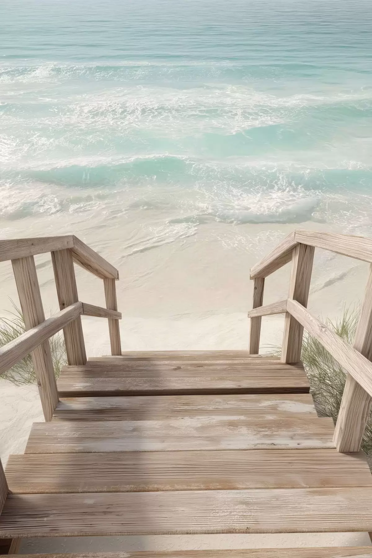 Poster Scări din lemn care duc la o plajă turcoaz Nr f46163