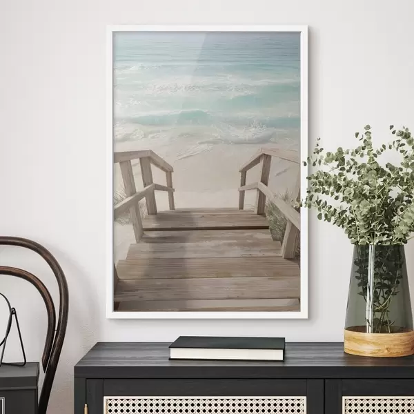 Poster Scări din lemn care duc la o plajă turcoaz f46163