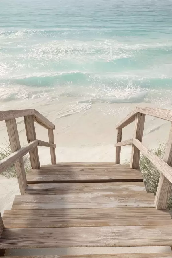 Poster Scări din lemn care duc la o plajă turcoaz Nr f46163