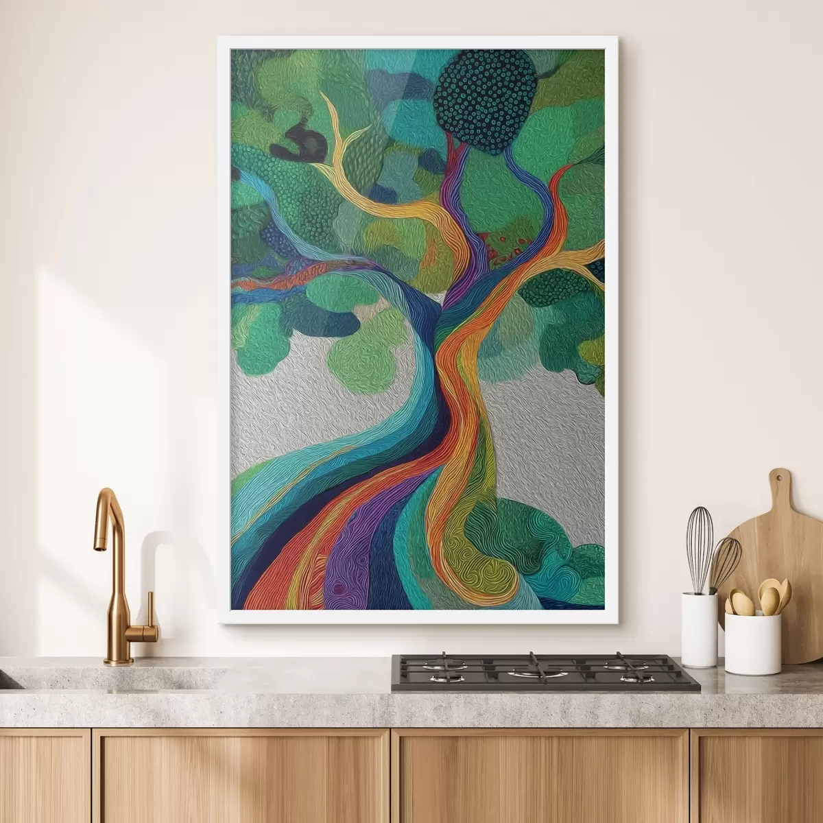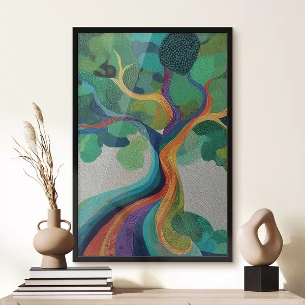 Poster Copac cu ramuri curcubeu pe fundal verde Nr f46173
