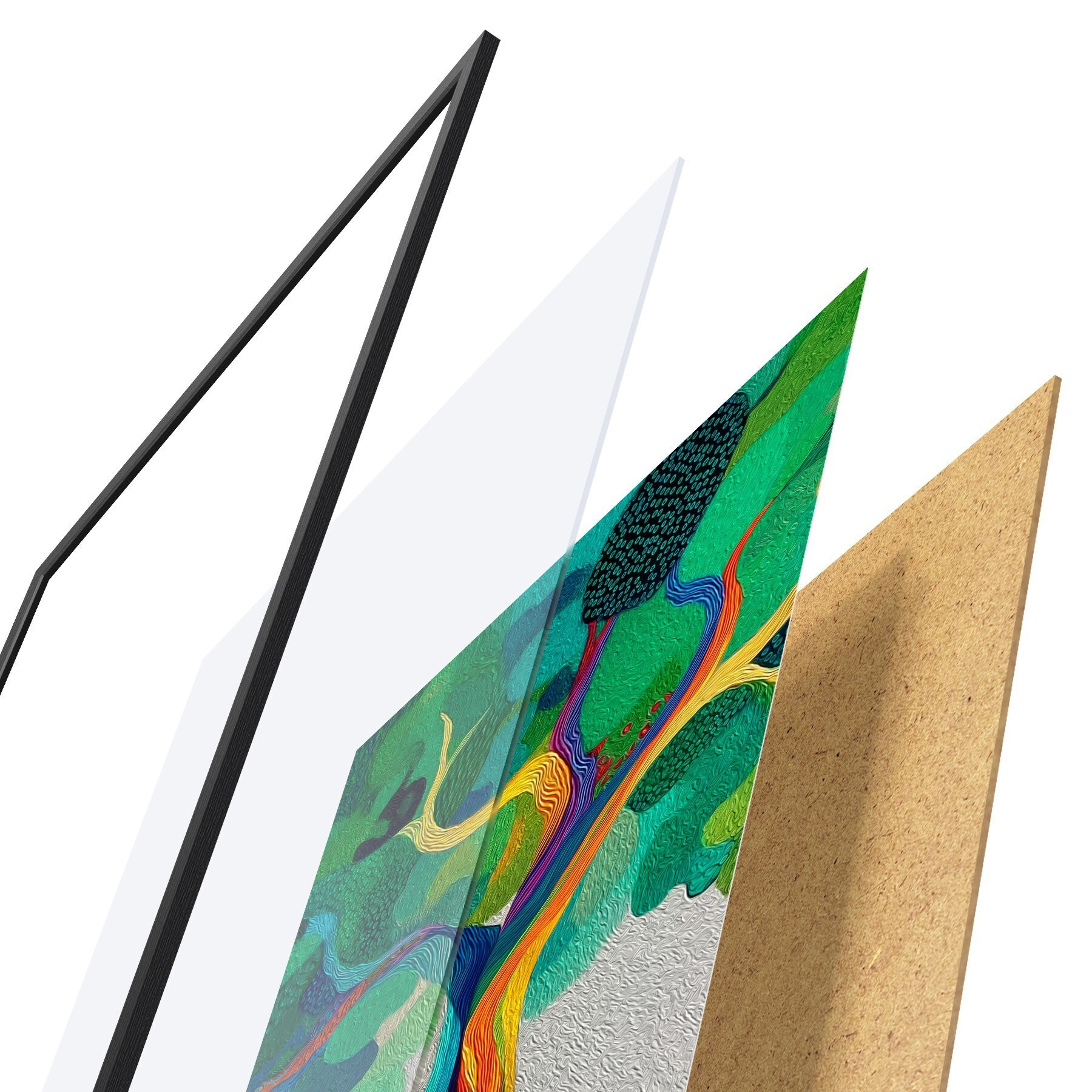 Poster Copac cu ramuri curcubeu pe fundal verde f46173